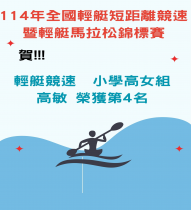 賀!!!輕艇競速小學高女組高敏榮獲第4名