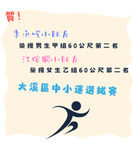 開啟上方區塊 榮譽事項:桃園市內柵國民小學-優質教育園地 返回榮譽首頁 熱門榮譽 請選擇榮譽事項 全區錦標全國錦標全國社團全市錦標市級社團全區錦標學習表現全校競賽校內活動最新榮譽 請選擇發佈單位 健康中心家長會會計室人事室輔導處總務處學務組教導處校長室 115年桃園市中小學校聯合運動會大溪區田徑選拔賽 賀~~~國小女生甲組江瑢嫻60公尺榮獲第2名國小女生甲組江瑢嫻跳遠榮獲第5名國小女生乙組鄭又華60公尺榮獲第3名國小女生乙組鄭又華100公尺榮獲第5名國小男生乙組許富傑60公尺榮獲第5名 詳全文 榮譽事項:最新榮譽 發佈單位:學務組 建立時間:2025-12-10 瀏覽次數:68 榮譽發表者:zxa56231 114年全國輕艇短距離競速暨輕艇馬拉松錦標賽 賀!!!輕艇競速小學高女組高敏榮獲第4名 詳全文 榮譽事項:最新榮譽 發佈單位:學務組 建立時間:2025-12-10 瀏覽次數:58 榮譽發表者:zxa56231 114年桃園市語文競賽市決賽 賀!!!本校張淯婷小姐參加114年桃園市語文競賽市決賽社會組作文第三名。 詳全文 榮譽事項:全市錦標 發佈單位:教導處 建立時間:2025-09-23 瀏覽次數:159 榮譽發表者:pitt 113學年度校刊評選,榮獲國小乙組雜誌類甲等 賀!!!本校「113學年度校刊評選」,榮獲國小乙組雜誌類甲等。 詳全文 榮譽事項:全市錦標 發佈單位:教導處 建立時間:2025-08-08 瀏覽次數:175 榮譽發表者:pitt 114年大溪區國中小市運代表隊選拔賽 賀~~~114年大溪區國中小市運代表隊選拔賽~~國小女生組江榕嫻跳遠榮獲第2名 詳全文 榮譽事項:最新榮譽 發佈單位:學務組 建立時間:2025-06-12 瀏覽次數:506 榮譽發表者:zxa56231 113年度第2次原住民族語言能力認證測驗 賽考利克泰雅語 中級 賀!!!邱晨晞小朋友113年度第2次原住民族語言能力認證測驗賽考利克泰雅語中級。 詳全文 榮譽事項:全市錦標 發佈單位:教導處 建立時間:2025-06-04 瀏覽次數:175 榮譽發表者:admin 114年度大溪區語文競賽 賀!!!本校學生及教師參加114年度大溪區語文競賽成績優異!五年甲班簡祺霖同學榮獲「國語朗讀」第1名!感謝謝潘筑甄老師的指導張淯婷小姐榮獲社會組「作文」第2名!游金川教師榮獲社會組「閩南語朗讀」第3名! 詳全文 榮譽事項:全區錦標 發佈單位:教導處 建立時間:2025-05-11 瀏覽次數:270 榮譽發表者:admin 113年兒童繪畫比賽 賀!!!李宥蓁小朋友榮獲佛光山桃園講堂2025年燈籠繪畫比賽佳作獎。 詳全文 榮譽事項:最新榮譽 發佈單位:教導處 建立時間:2025-01-05 瀏覽次數:281 榮譽發表者:admin 113年兒童繪畫比賽 賀!!!李宥蓁小朋友榮獲第八屆壽山巖親子繪畫優選獎;第四十九屆國泰全國兒童繪畫比賽佳作獎。 詳全文 榮譽事項:全國社團 發佈單位:教導處 建立時間:2024-12-02 瀏覽次數:275 榮譽發表者:admin 113學年度大溪區中小運選賽 賀!!!113學年度大溪區中小運選拔賽,男生甲組60公尺第二名---李承峻小朋友;女生乙組60公尺第二名---江榕嫻小朋友。 詳全文 榮譽事項:全區錦標 發佈單位:教導處 建立時間:2024-12-02 瀏覽次數:441 榮譽發表者:admin 上一頁 1 2 3 4 下一頁